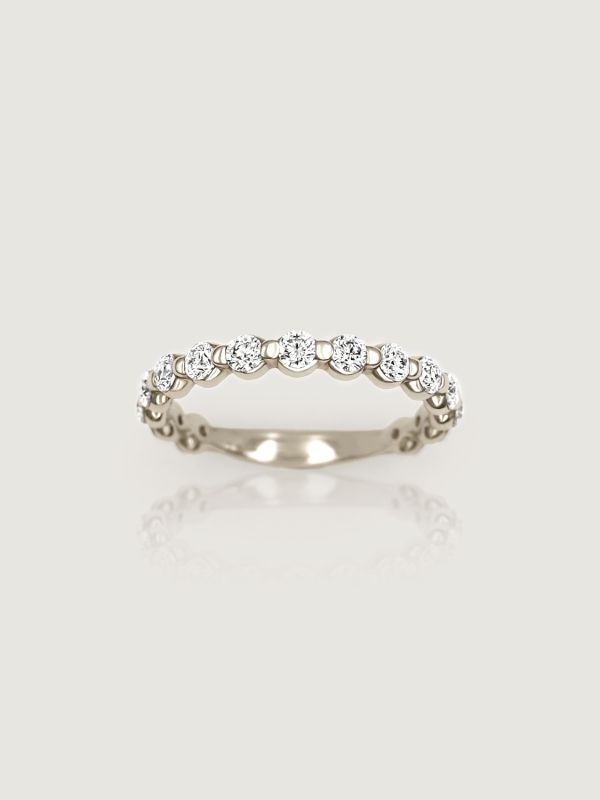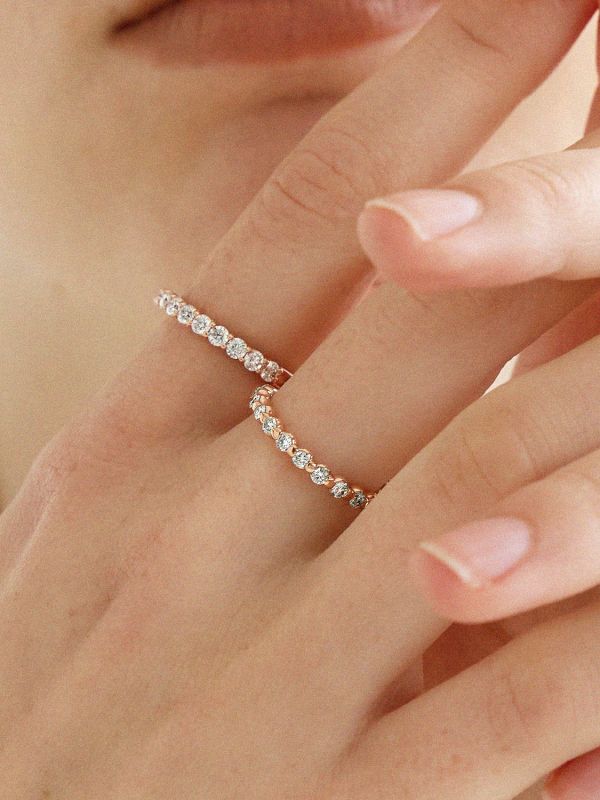 메인 스톤 주변으로 작은 스톤들이 한 바퀴 둘러지는 헤일로 디자인입니다. 정교한 사이드 스톤 라인이 더 크고 선명한 빛을 선사합니다. 전체적으로 동그란 라운드 셰입 디자인이 단정하고 부드러운 분위기를 연출하면서도, 섬세하고 디테일한 세팅이 우아함을 더해줍니다.