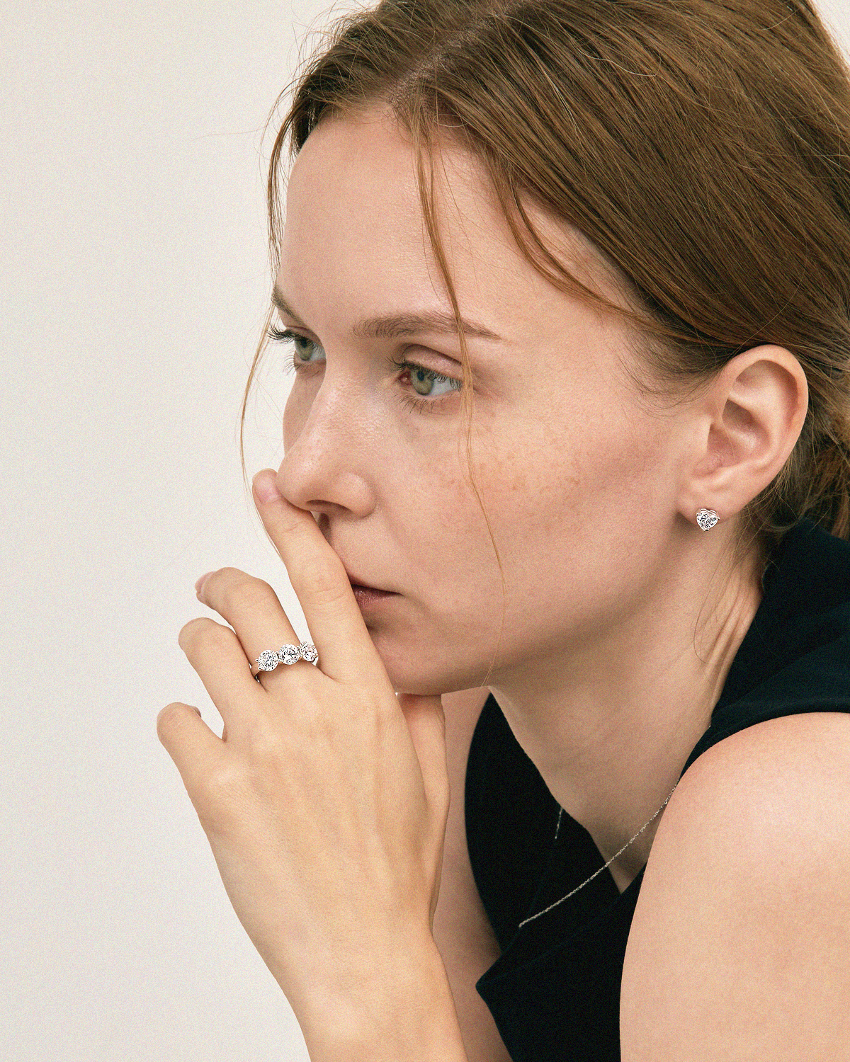 다이아몬드와 성분은 다르지만, 처음 발견 당시 다이아몬드로 착각됐을 만큼 비슷한 특징을 갖고 있습니다. 모조석 중에 최고의 광채를 자랑하며, 다이아몬드와 비슷한 9.25의 단단한 경도로 반짝임이 영구적입니다.