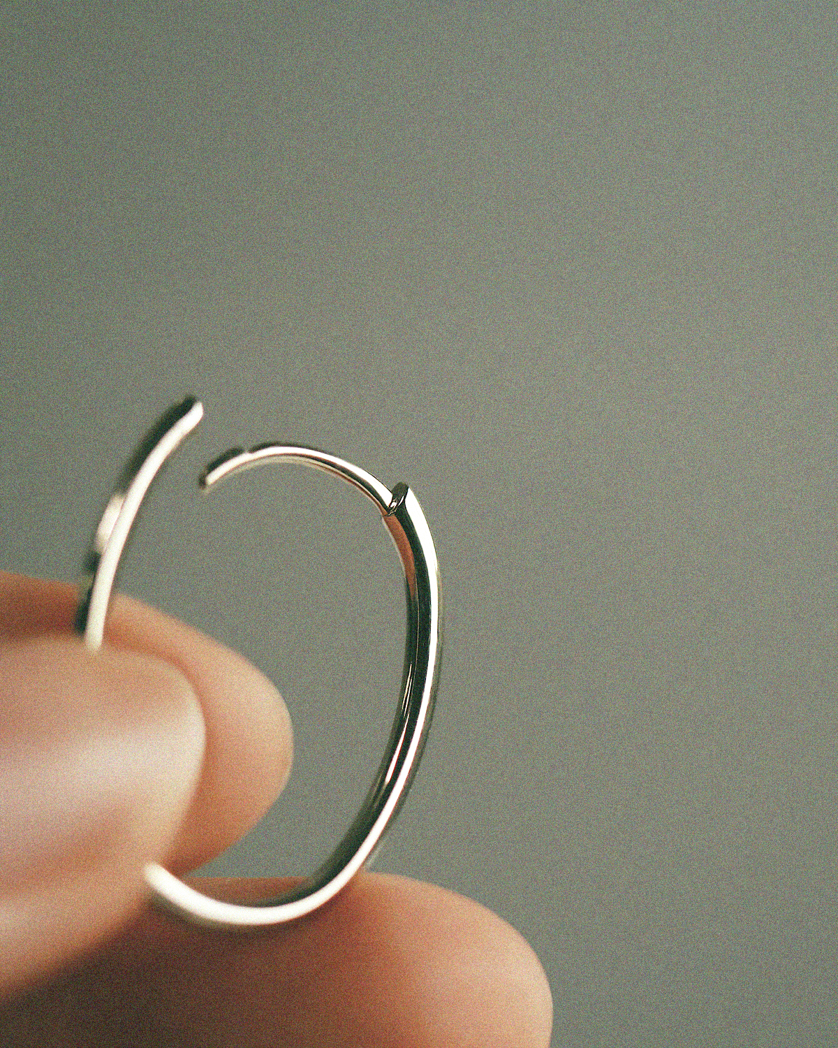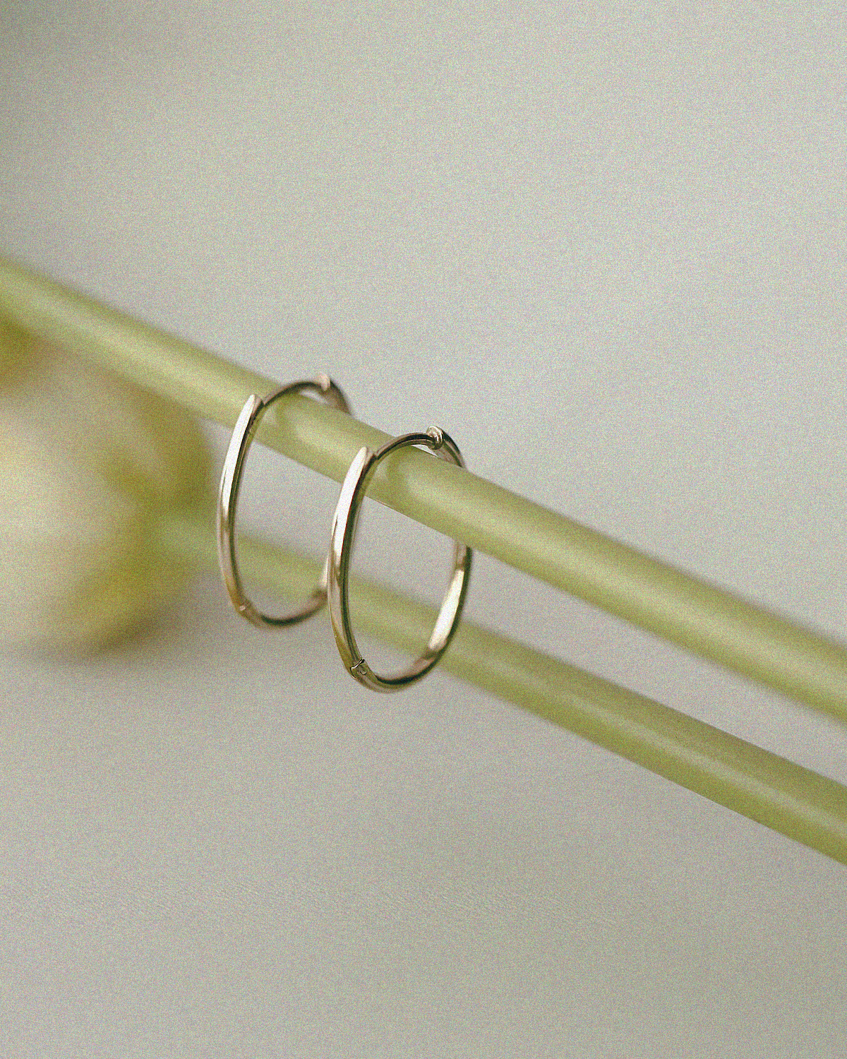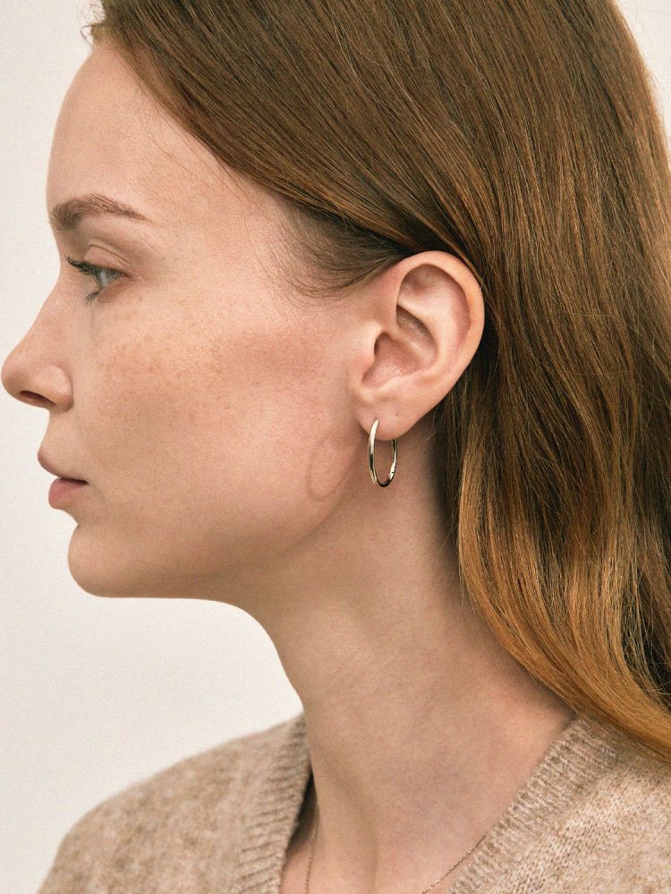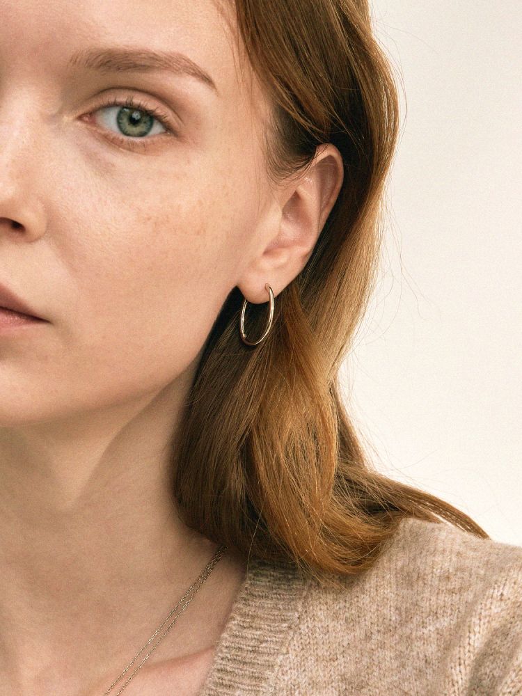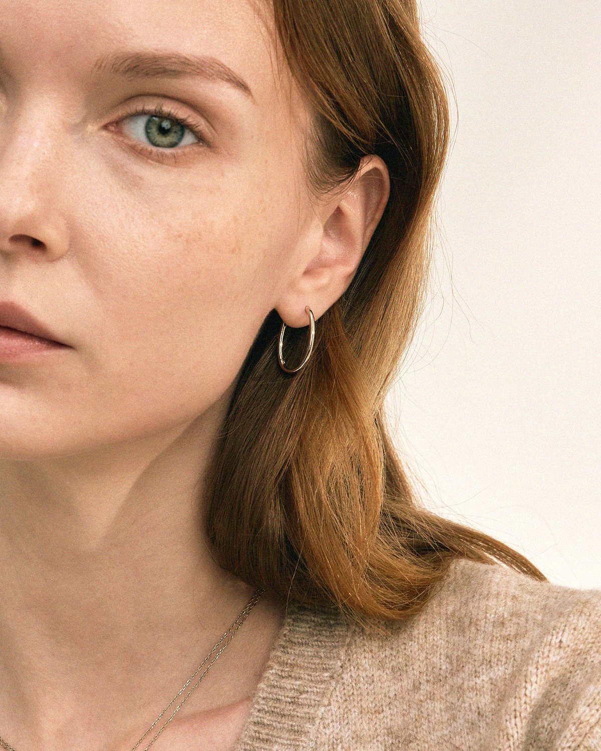 할로우 공법의 속이 비어있는 일반 링 귀걸이가 아닌, 안쪽까지 모두 금으로 채워져 있어 튼튼한 내구성을 자랑합니다. 적당한 크기와 도톰한 두께로, 고급스럽고 편안하게 착용하실 수 있습니다.