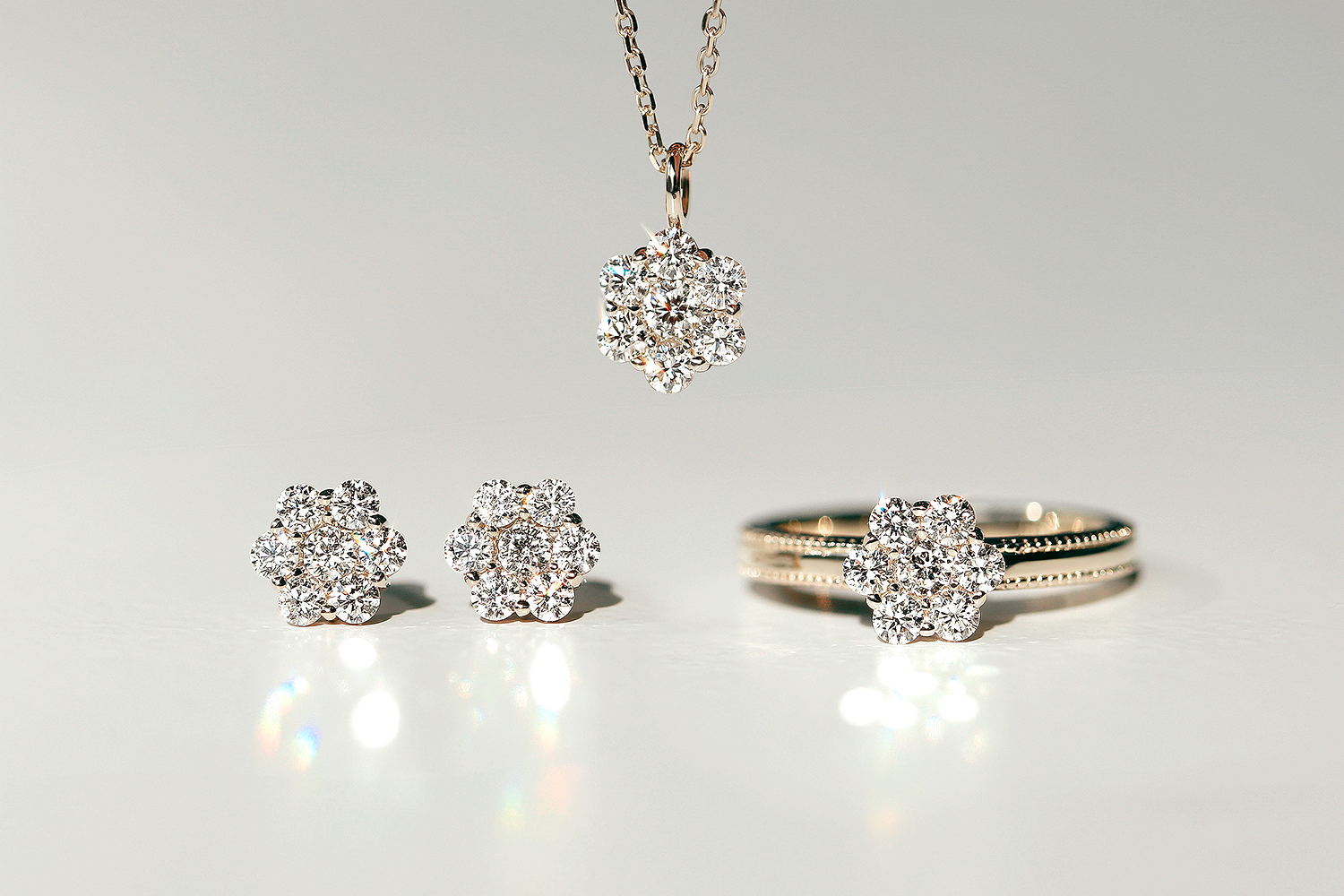 꽃잎을 표현한 7개의 스톤이 사랑스럽고 페미닌한 느낌을 주면서도, 견고하고 깊은 광채에서 강인함이 느껴집니다. 편안한 사이즈와 디자인으로, 데일리 주얼리는 물론 프러포즈 주얼리로도 많은 사랑을 받고 있습니다.