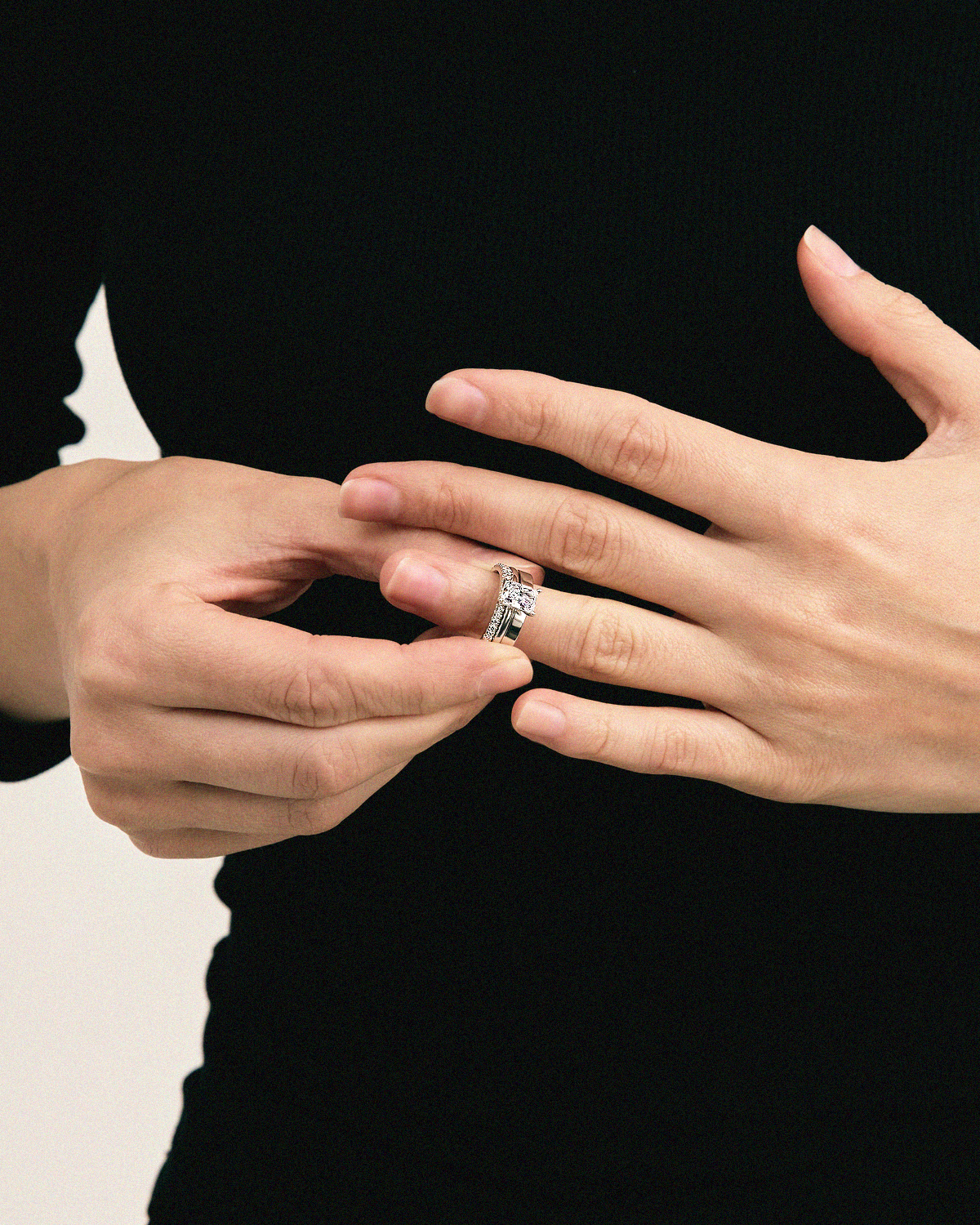 하프 세팅으로, 뒷부분은 밴드 디자인입니다. 손가락이 접히는 부분에 편안하고 부드러운 착용감을 자랑합니다.