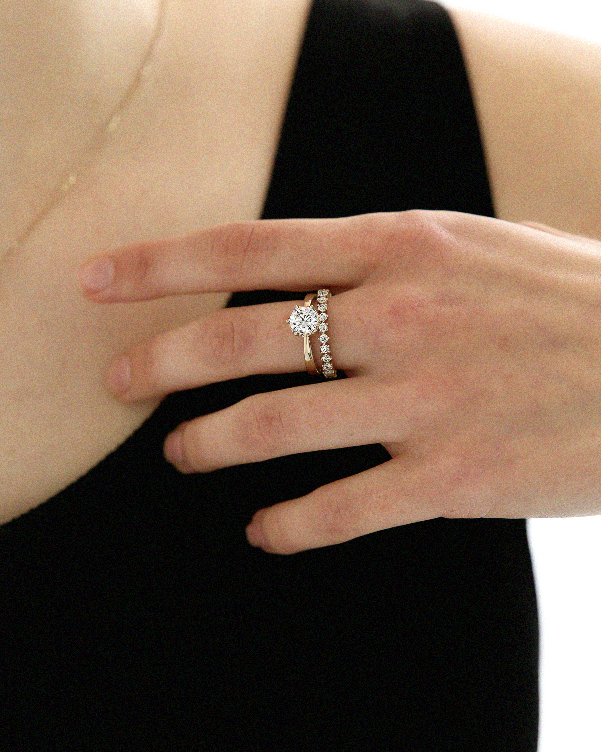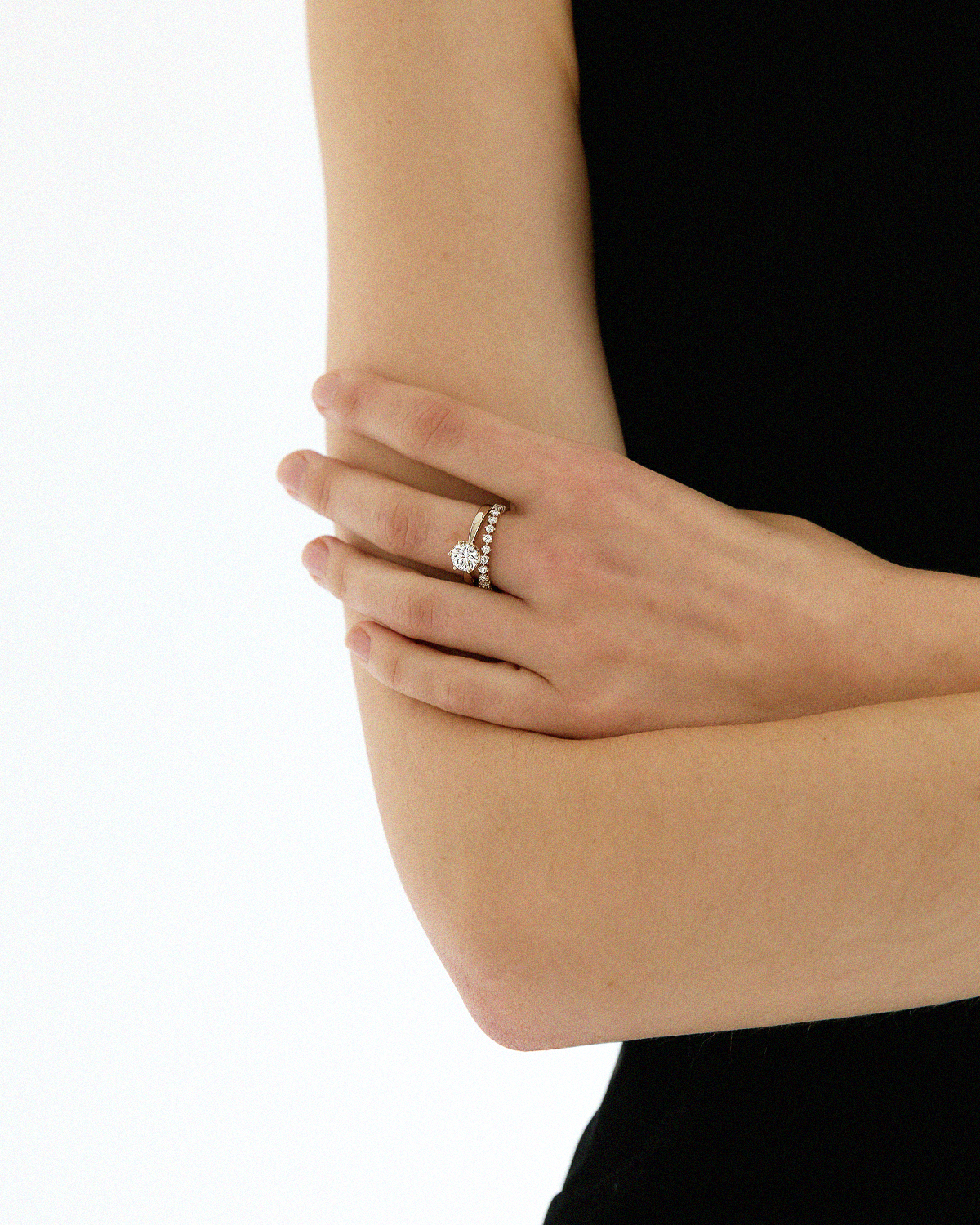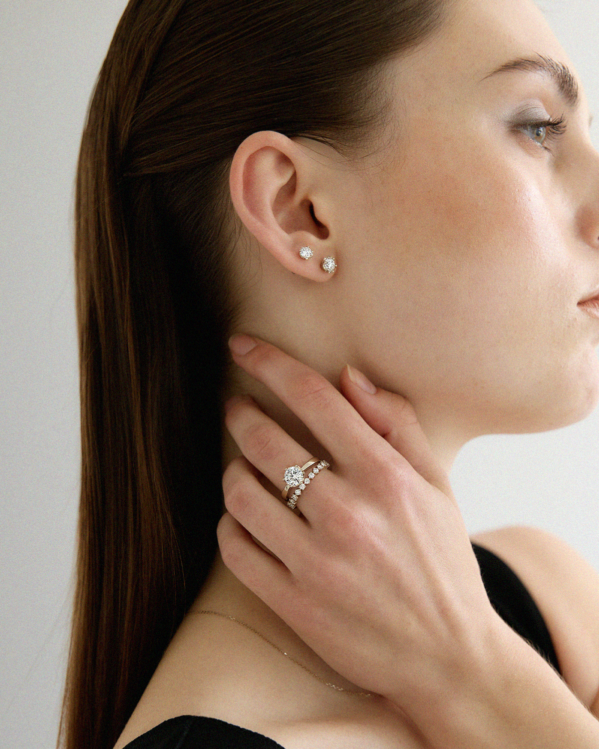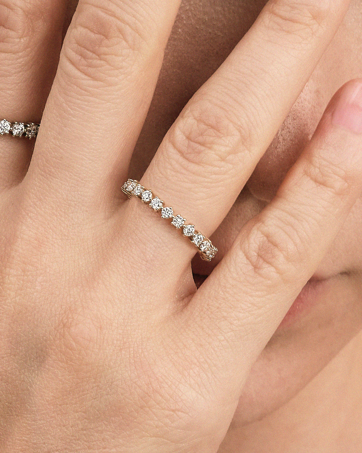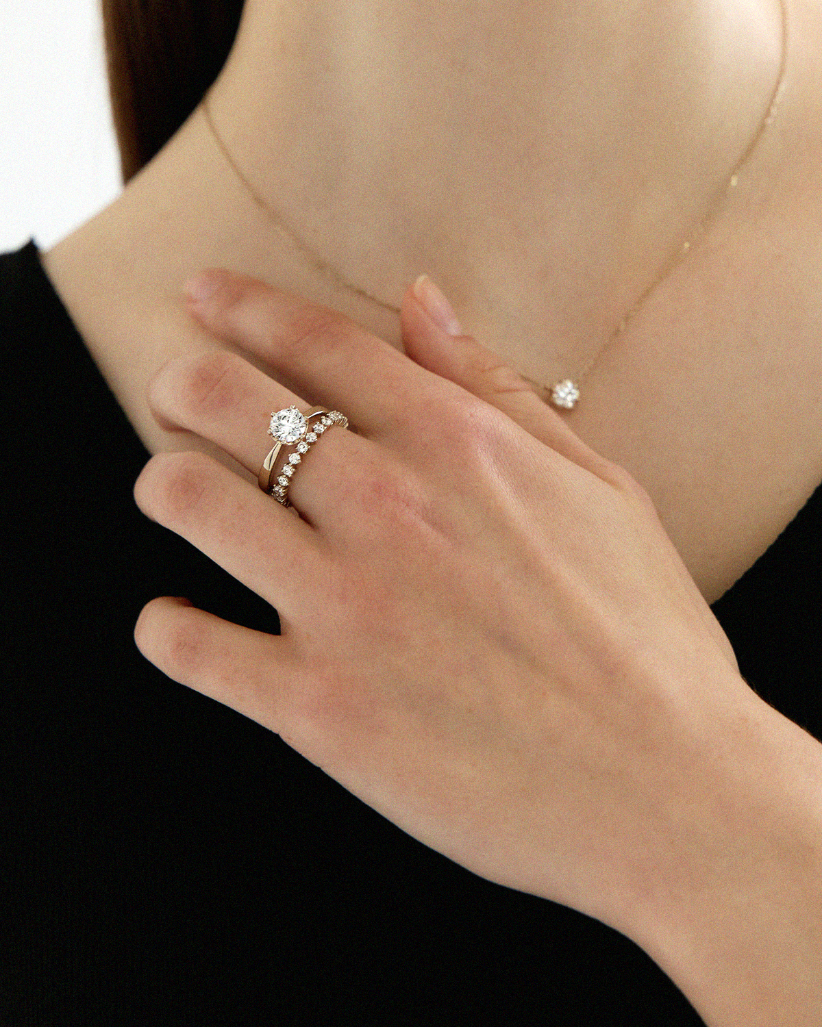 2.4mm 스톤을 6프롱, 8프롱으로 교차 배열하여 화사하고 화려한 분위기를 연출합니다. 2.0mm / 2.4mm 두 가지 타입으로 만나보실 수 있습니다.