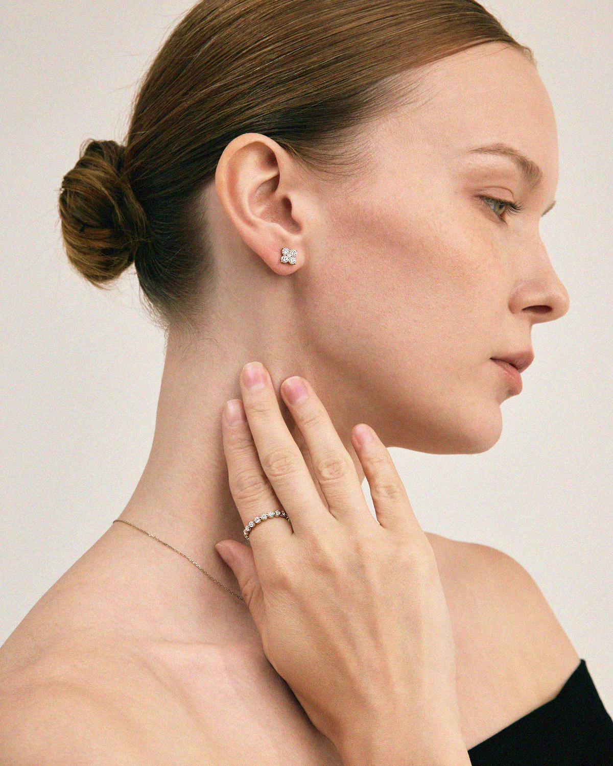 열매를 맺듯 소망했던 일들이 이뤄지는 마음을 담았습니다. 동글동글한 금 장식과 스톤을 교차 배열하여 귀엽고 사랑스러운 분위기를 연출합니다.