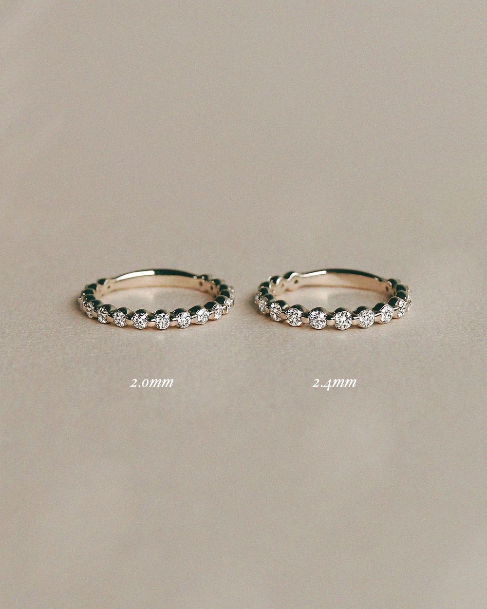 프롱(발)이 나와있지 않고, 뒷부분 밴딩 처리까지 더해져 부드러운 착용감이 돋보입니다. 2.0mm / 2.4mm 두 가지 타입으로 만나보실 수 있습니다.