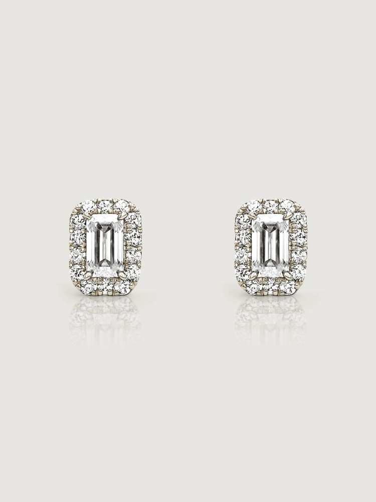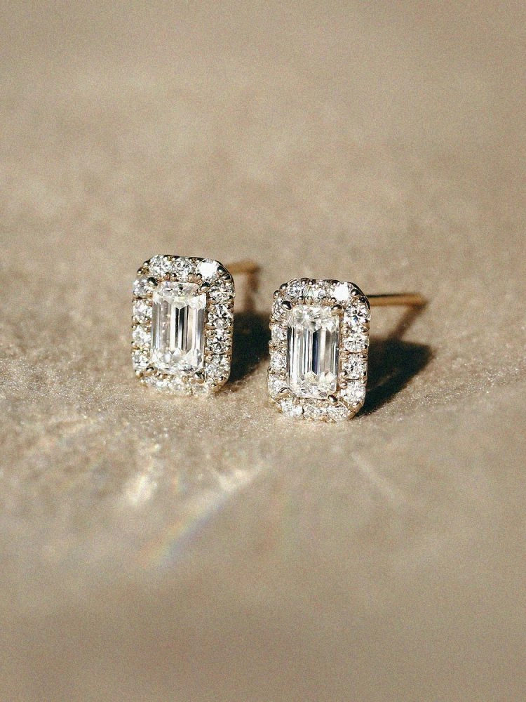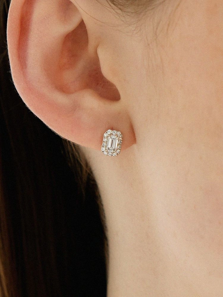 메인 에메랄드 컷을 따라 사이드 스톤이 둘러지는 헤일로 스타일은 더욱 고급스럽고 클래식한 아름다움을 표현합니다.