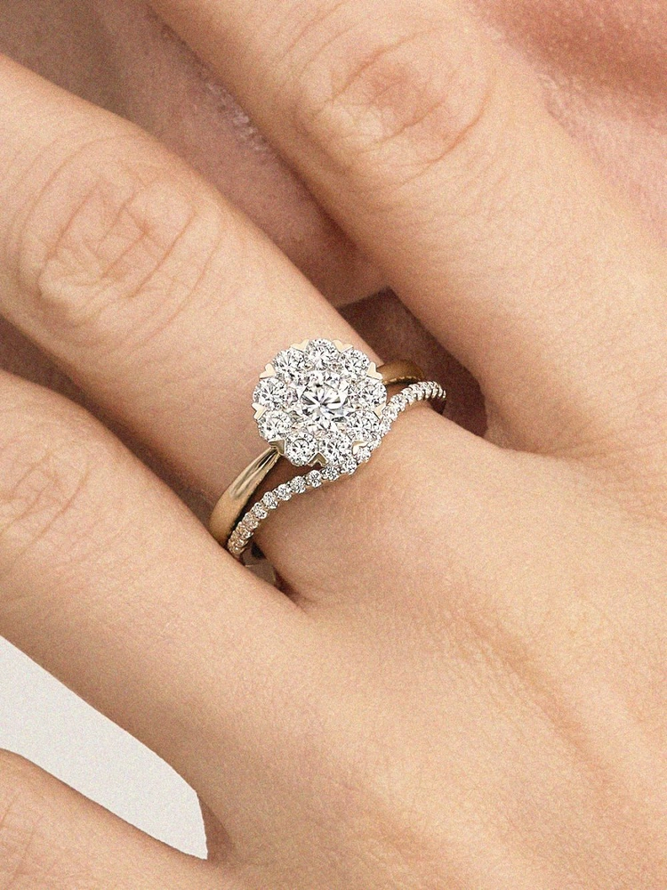 크라운 캐럿(왼쪽)이 심플하고 각이 살아있는 샤프한 디자인이라면, 그레이스 캐럿(오른쪽)은 화려한 옆면 장식과 둥근 프롱으로 부드럽고 우아한 느낌이 돋보입니다.
