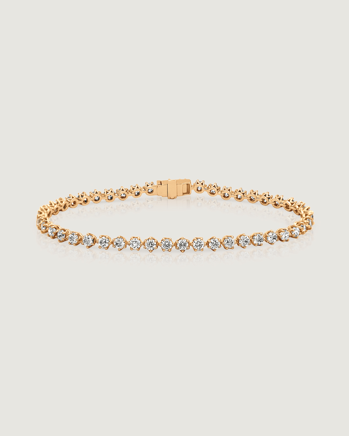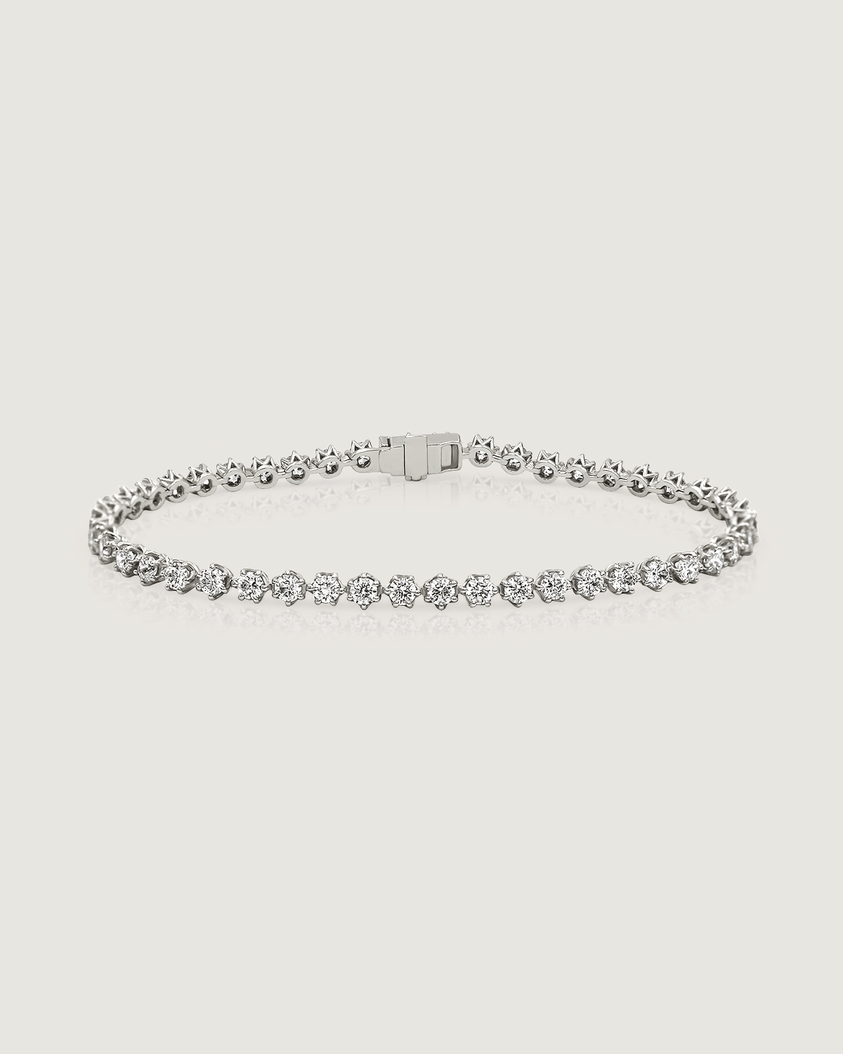 스톤 하나하나 6개의 프롱으로 세팅되고, 한 송이 한 송이가 교차 배열되어 사랑스럽고 우아한 무드를 연출합니다. 한 칸 한 칸 가치온 장인분들의 견고하고 섬세한 퀄리티를 경험하실 수 있습니다.