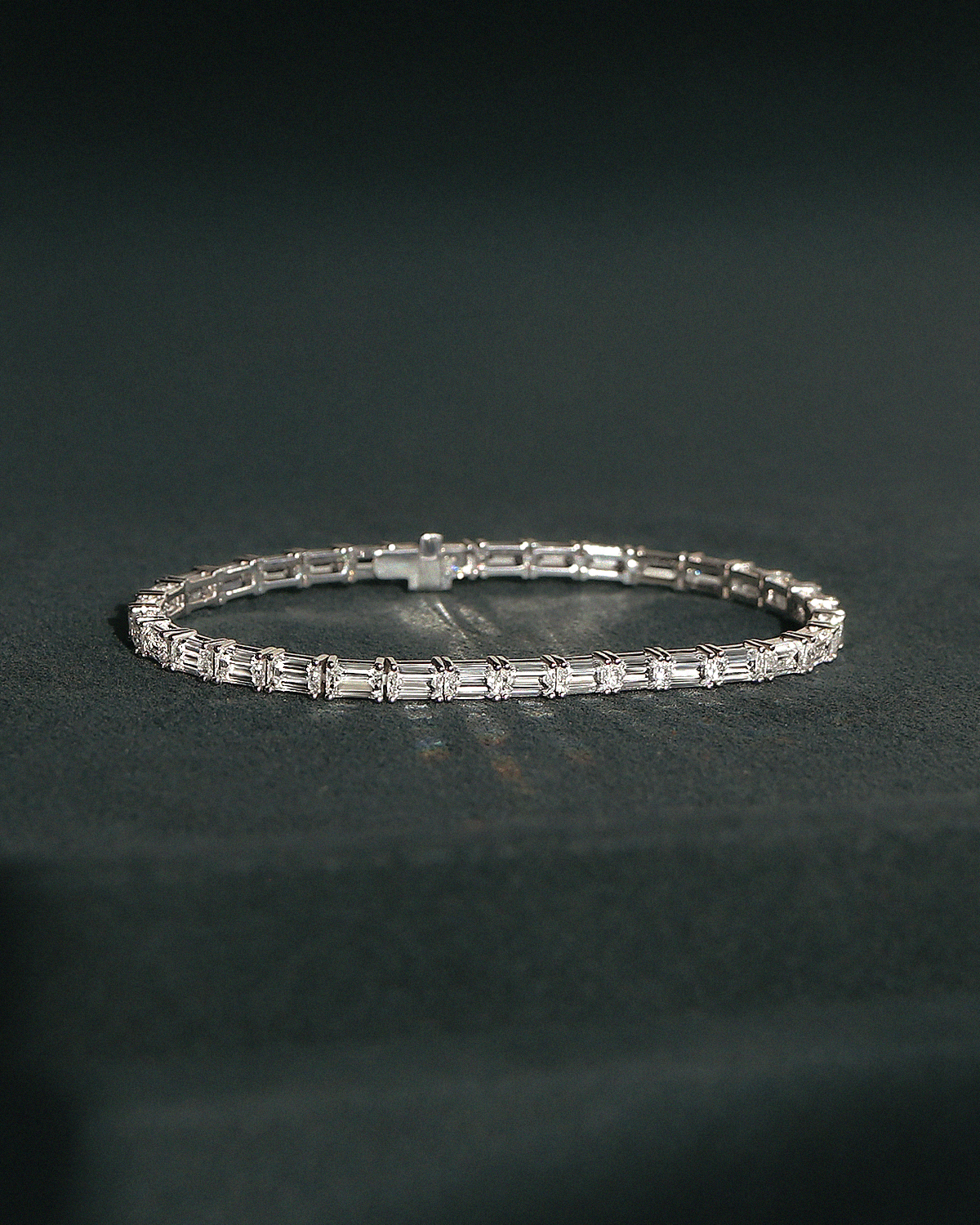 깊고 투명한 호수 조각처럼, 절제된 광채를 지닌 에메랄드 컷이 정교하게 이어진 테니스 팔찌입니다. 직사각형 셰입의 에메랄드 컷이 빈틈없이 촘촘하게 채워져, 세련되고 우아한 분위기가 돋보입니다.