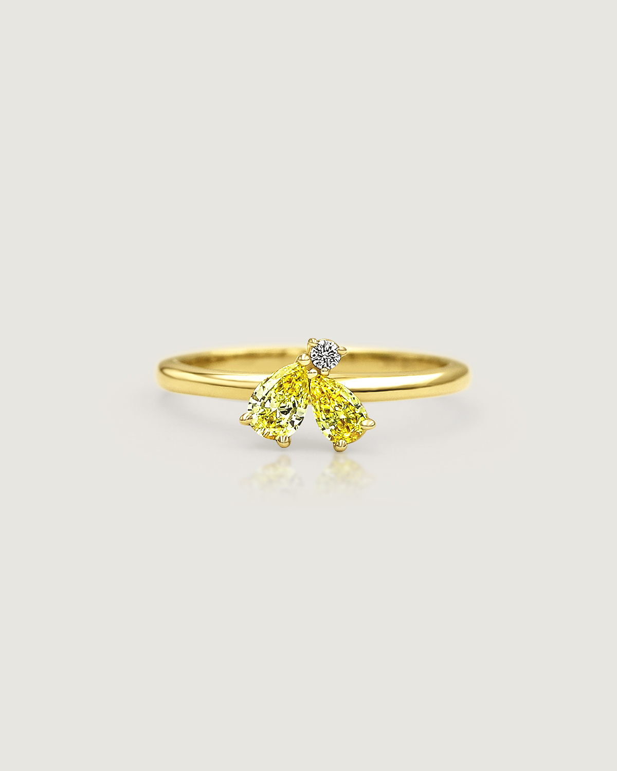 꽃잎을 닮은 섬세한 페어컷 두 피스와 이슬 한 방울이 맺힌 듯 라운드 브릴리언트 컷이 포인트 있게 마무리됩니다.