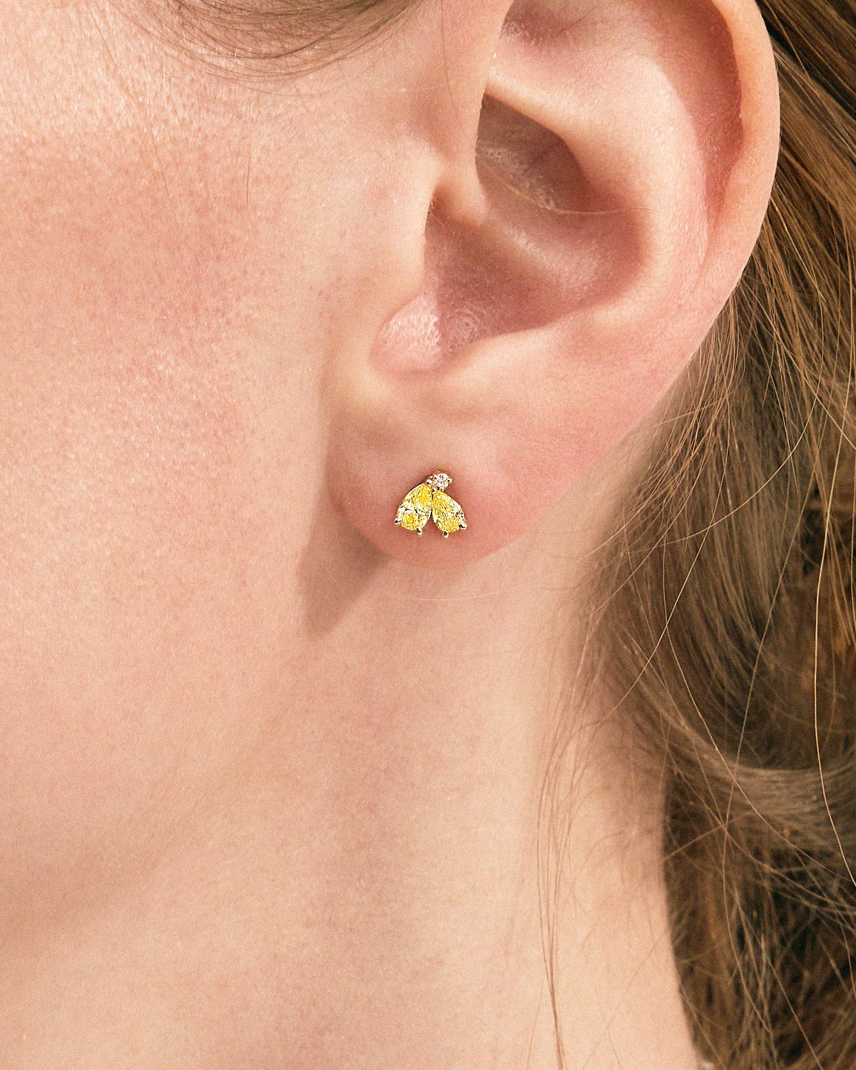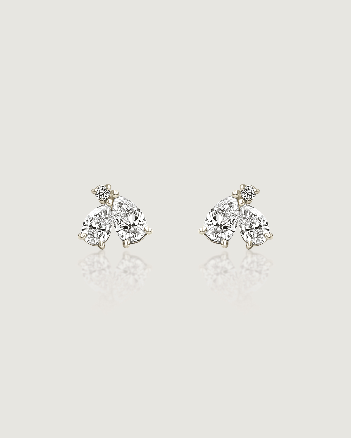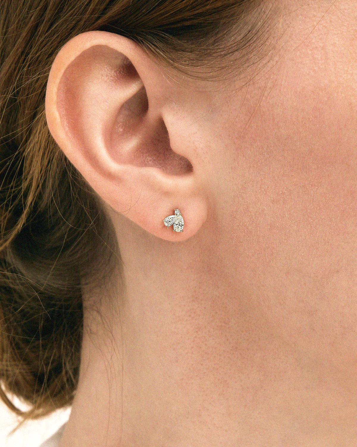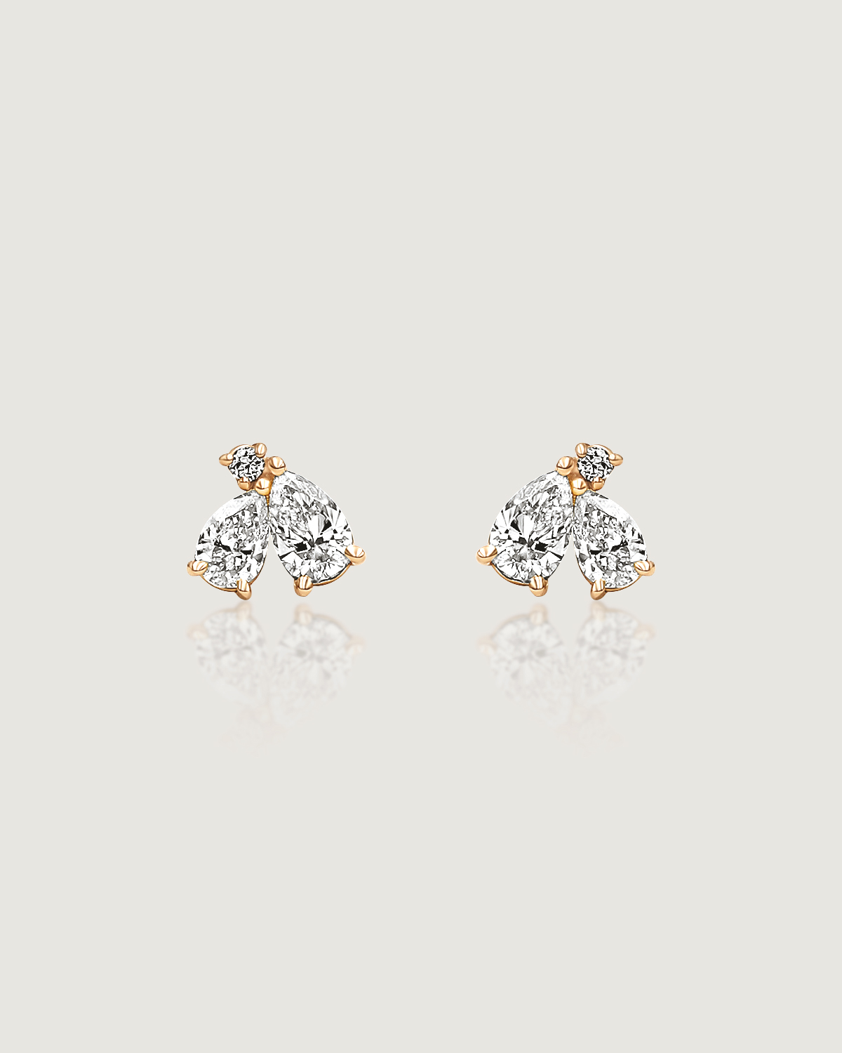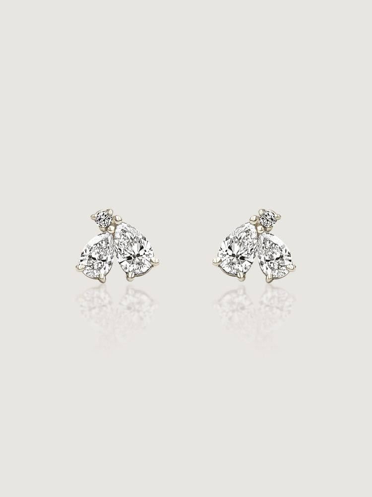 꽃잎을 닮은 섬세한 페어컷 두 피스와 이슬 한 방울이 맺힌 듯 라운드 브릴리언트 컷이 포인트 있게 마무리됩니다.