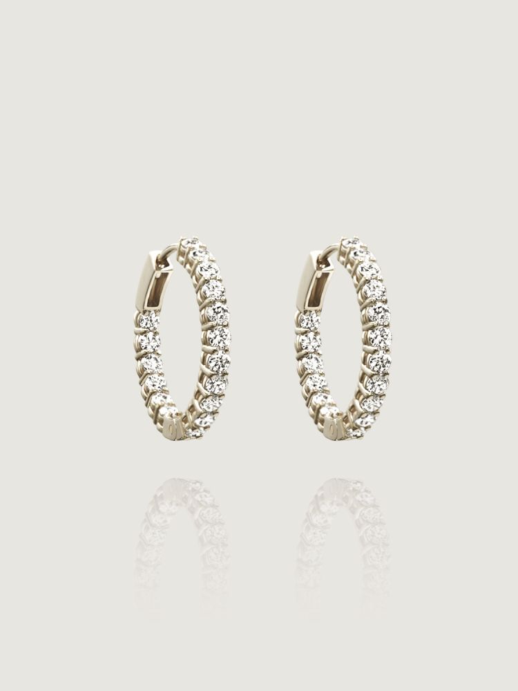 한 줄로 촘촘하게 연결되어 광채가 더욱 돋보이는 브라이트 캐럿 컬렉션 중 후프 귀걸이입니다.