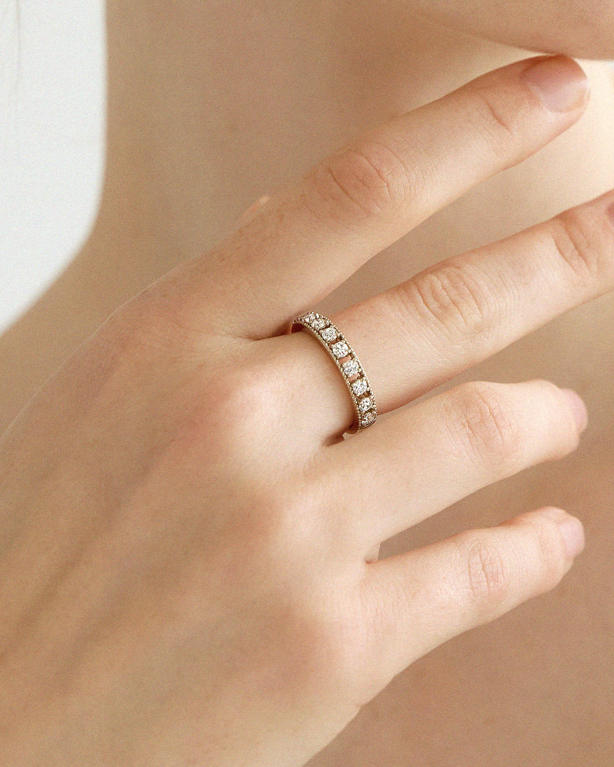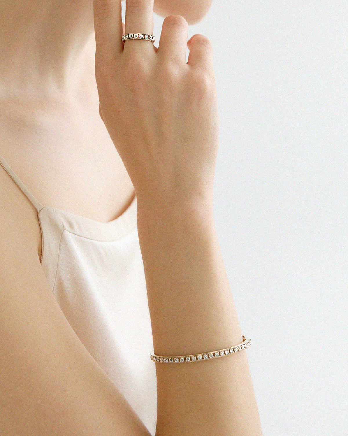 360° 풀 세팅이 아닌 180° 하프 세팅으로, 손바닥에 닿는 부분은 밴드 처리되어 편안한 착용감을 선사합니다.