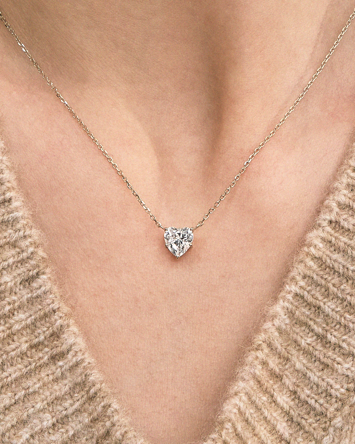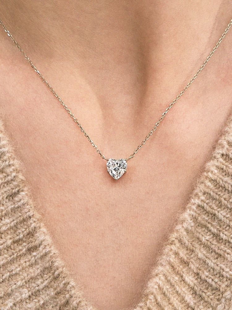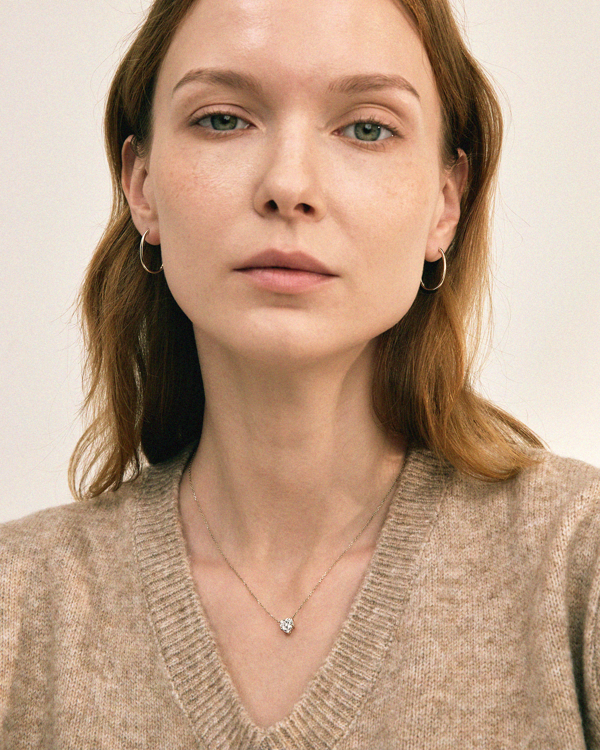 쇄골 사이에 놓인 하트 셰입은 움직임에 따라 선명한 빛을 드러내며, 페미닌하면서도 로맨틱한 분위기를 자연스럽게 완성합니다.