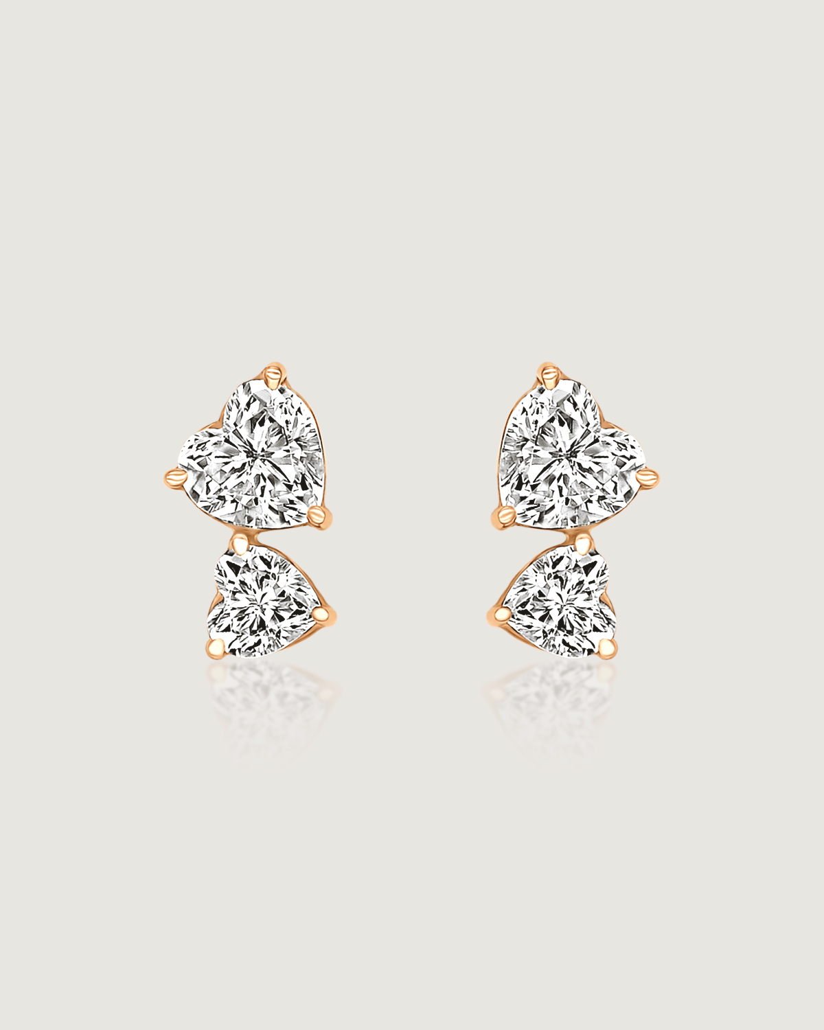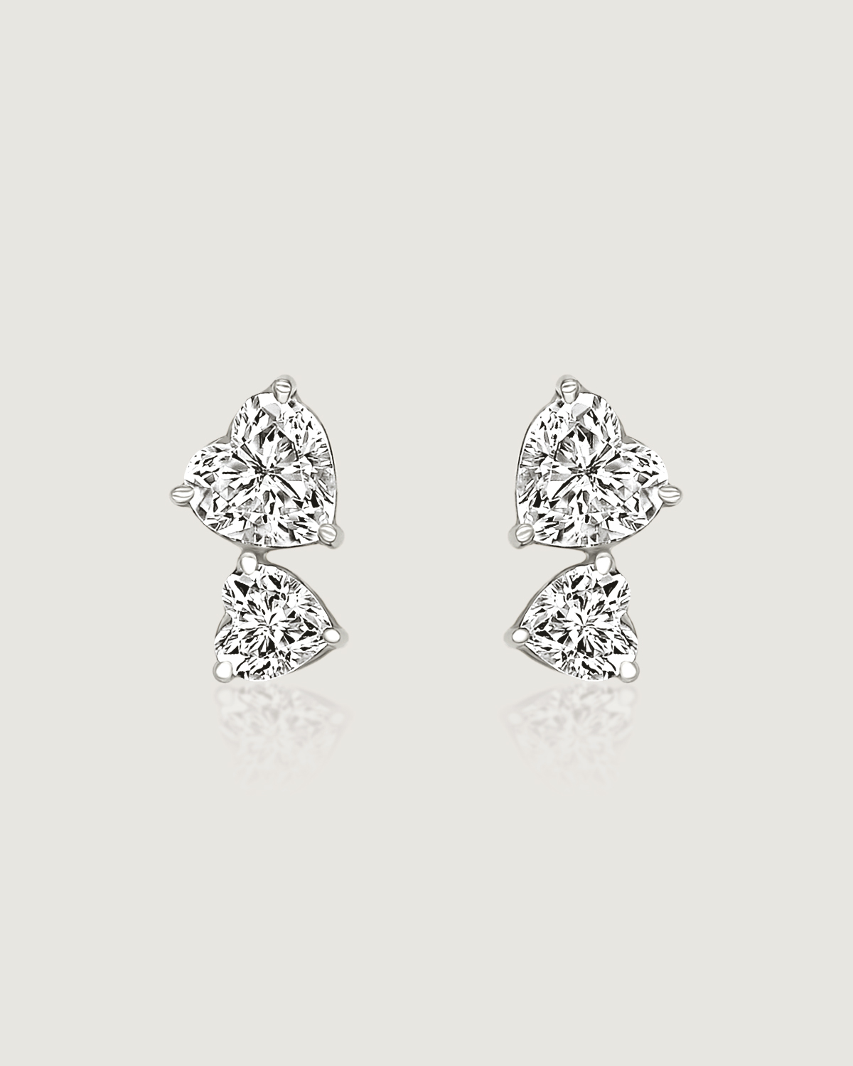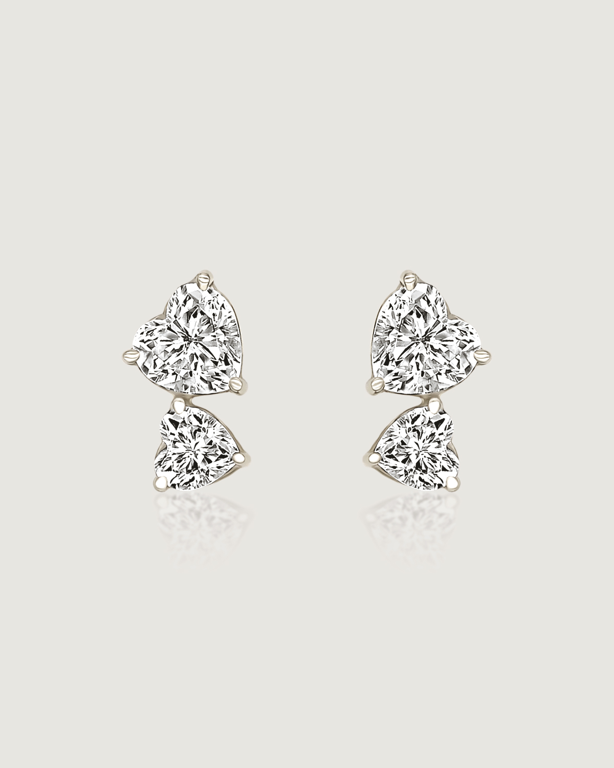 1캐럿과 약 0.4~0.5캐럿의 하트 컷 스톤이 감정이 흐르듯 부드럽게 이어지며, 서로를 향해 기울어진 균형 속에서 아름다운 형태를 완성합니다. 페미닌하면서도 우아하고 로맨틱한 분위기를 자연스럽게 자아냅니다.