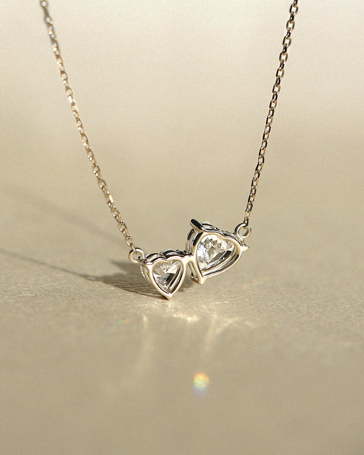 사랑의 본질을 가장 순수한 형태로 담아낸 At Heart 컬렉션 안에서, 서로 다른 두 개의 하트가 마주하는 Double Heart Necklace와 Earring입니다.