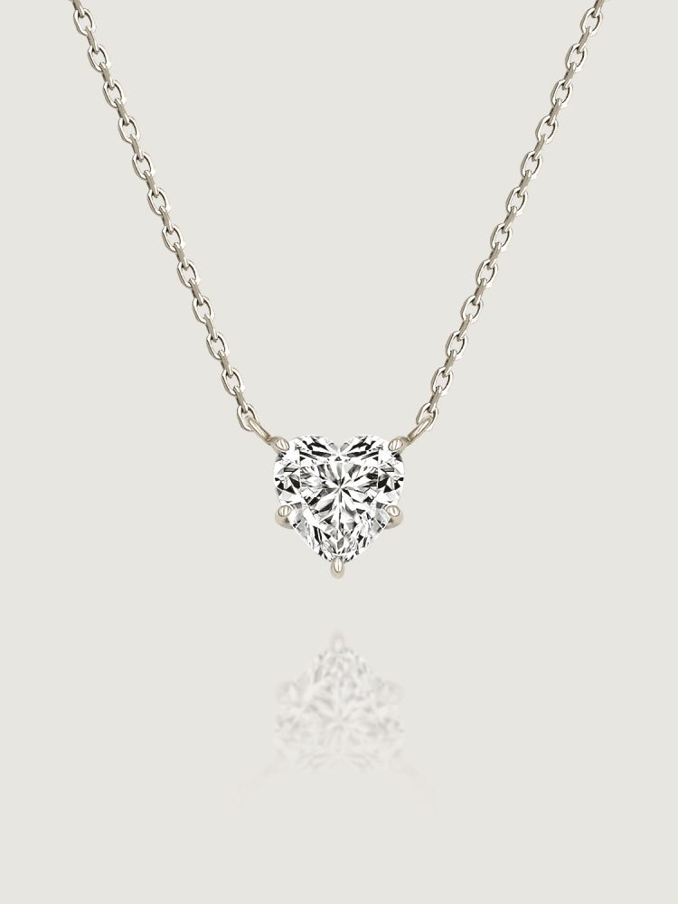 Single Heart Necklace는 1캐럿 하트 컷 스톤을 5개의 프롱으로 섬세하게 세팅하여, 스톤이 공중에 떠 있는 듯한 투명한 공간감을 완성합니다. 절제된 구조 속에서 시선은 자연스럽게 스톤에 머물며, 깊고 단단한 존재감을 드러냅니다.