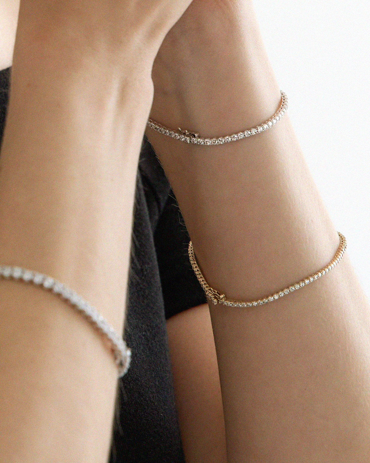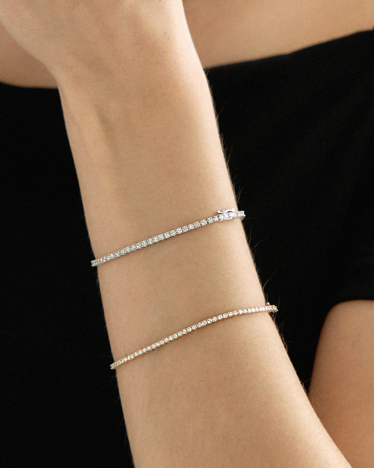 한 줄로 촘촘하게 연결되어 광채가 더욱 돋보이는 브라이트 캐럿 컬렉션 중 2.0mm 팔찌입니다.