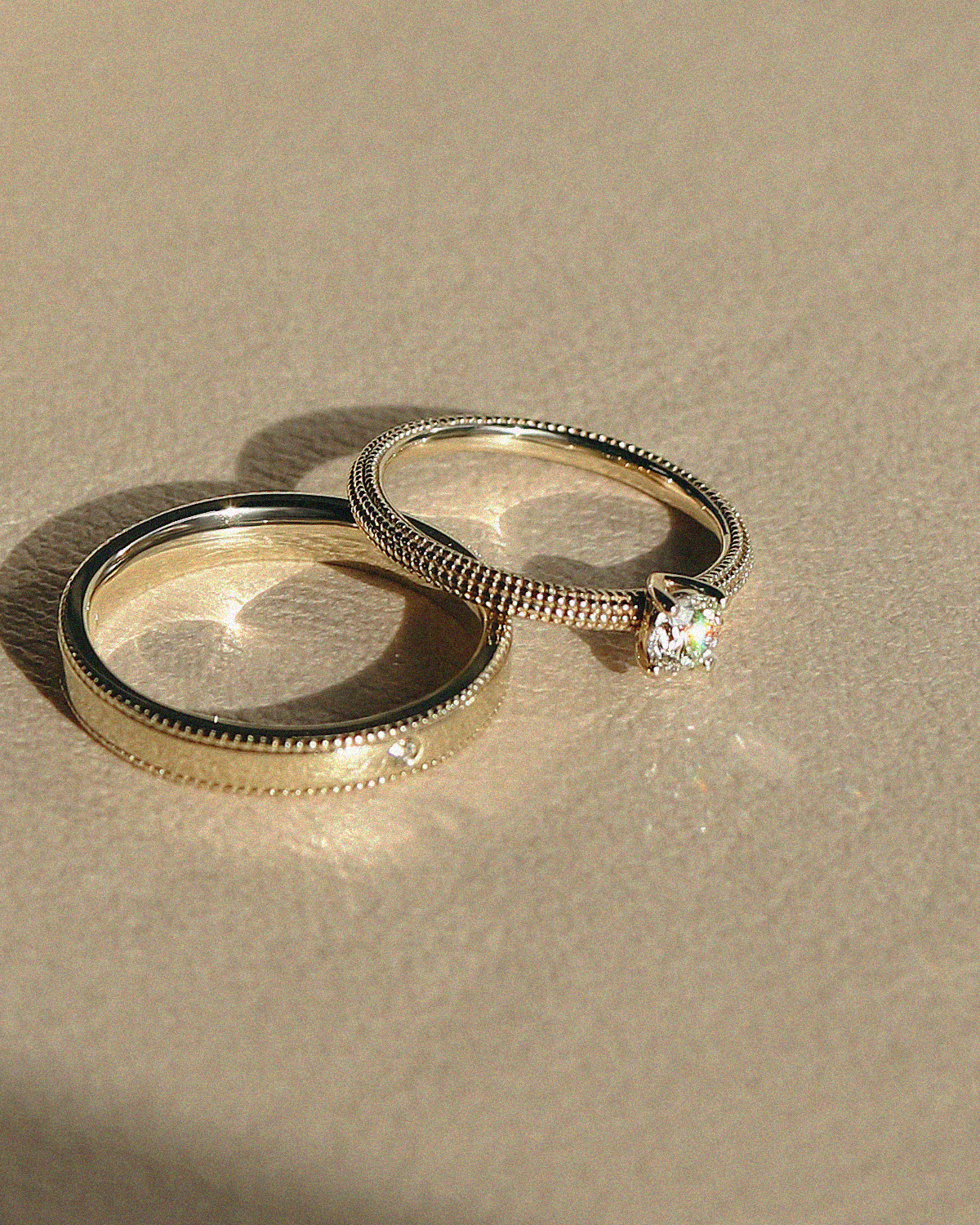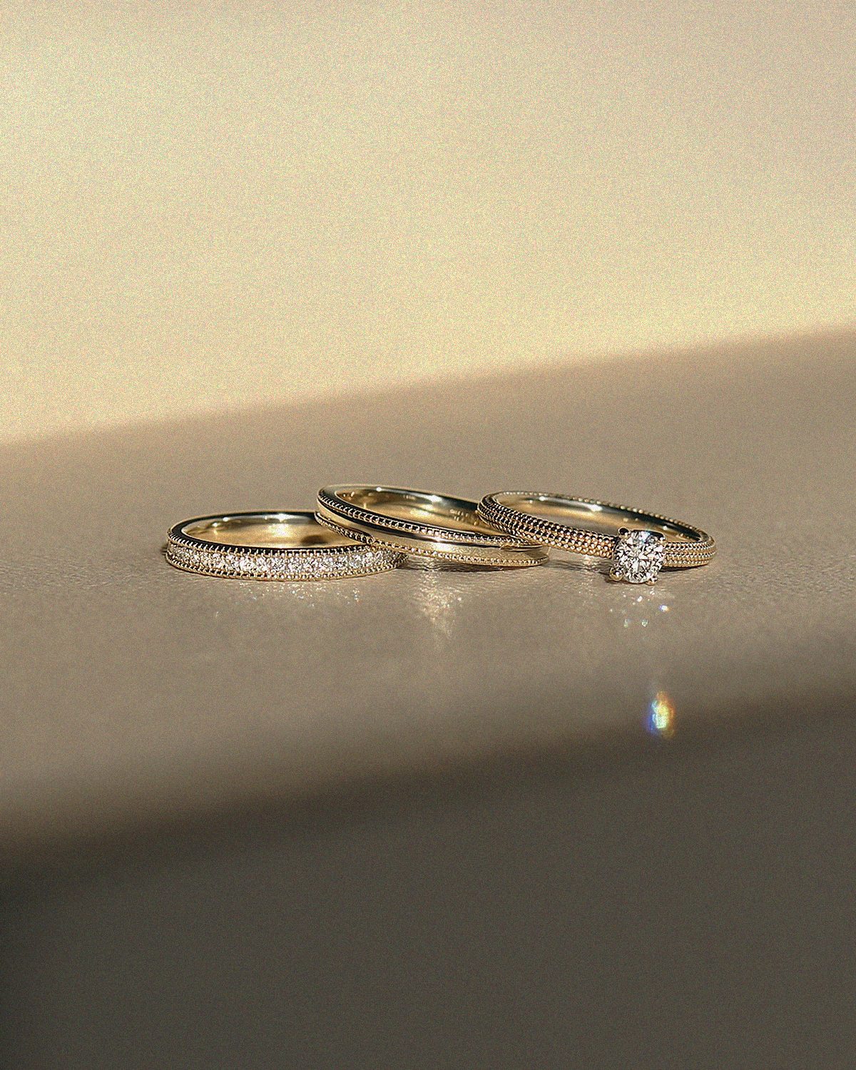 ‘천 개의 알갱이’라는 뜻을 지닌 정통 밀그레인 기법을 활용해, 클래식한 감성과 함께 특별한 꽃길의 의미를 담아냈습니다. 견고하면서도 따뜻한 디테일이 어우러져, 우아하면서도 강인한 아름다움을 선사합니다.