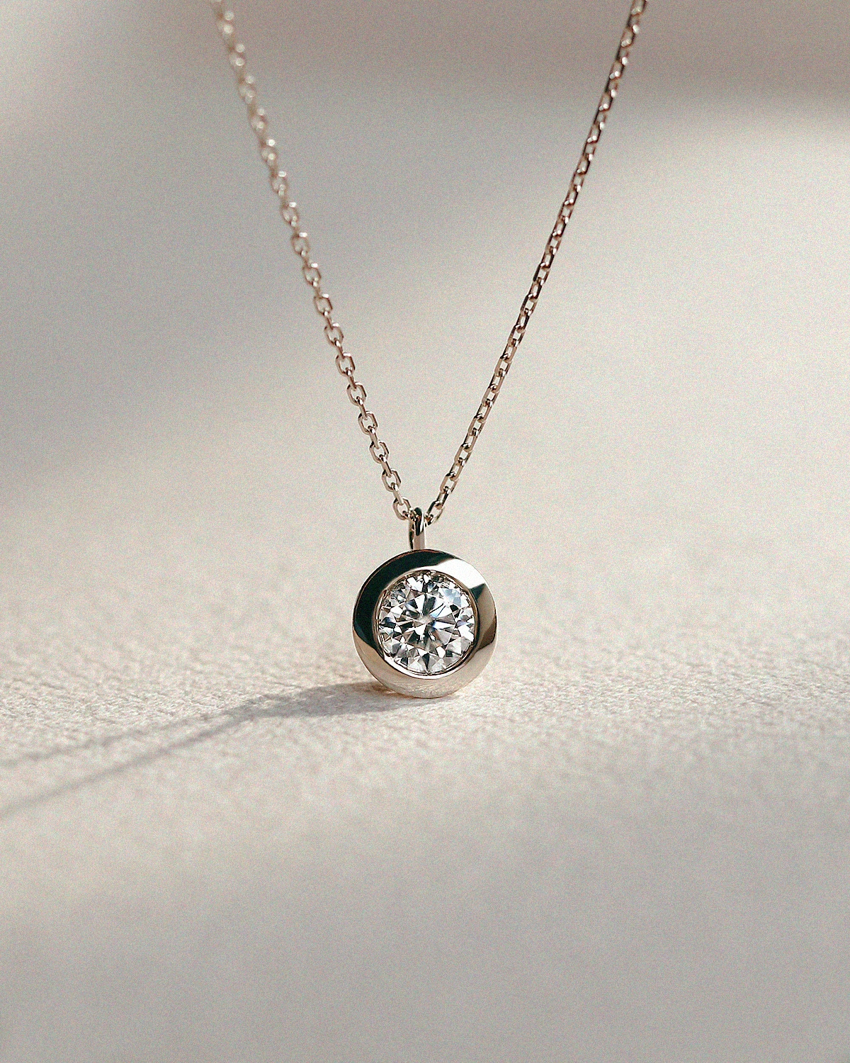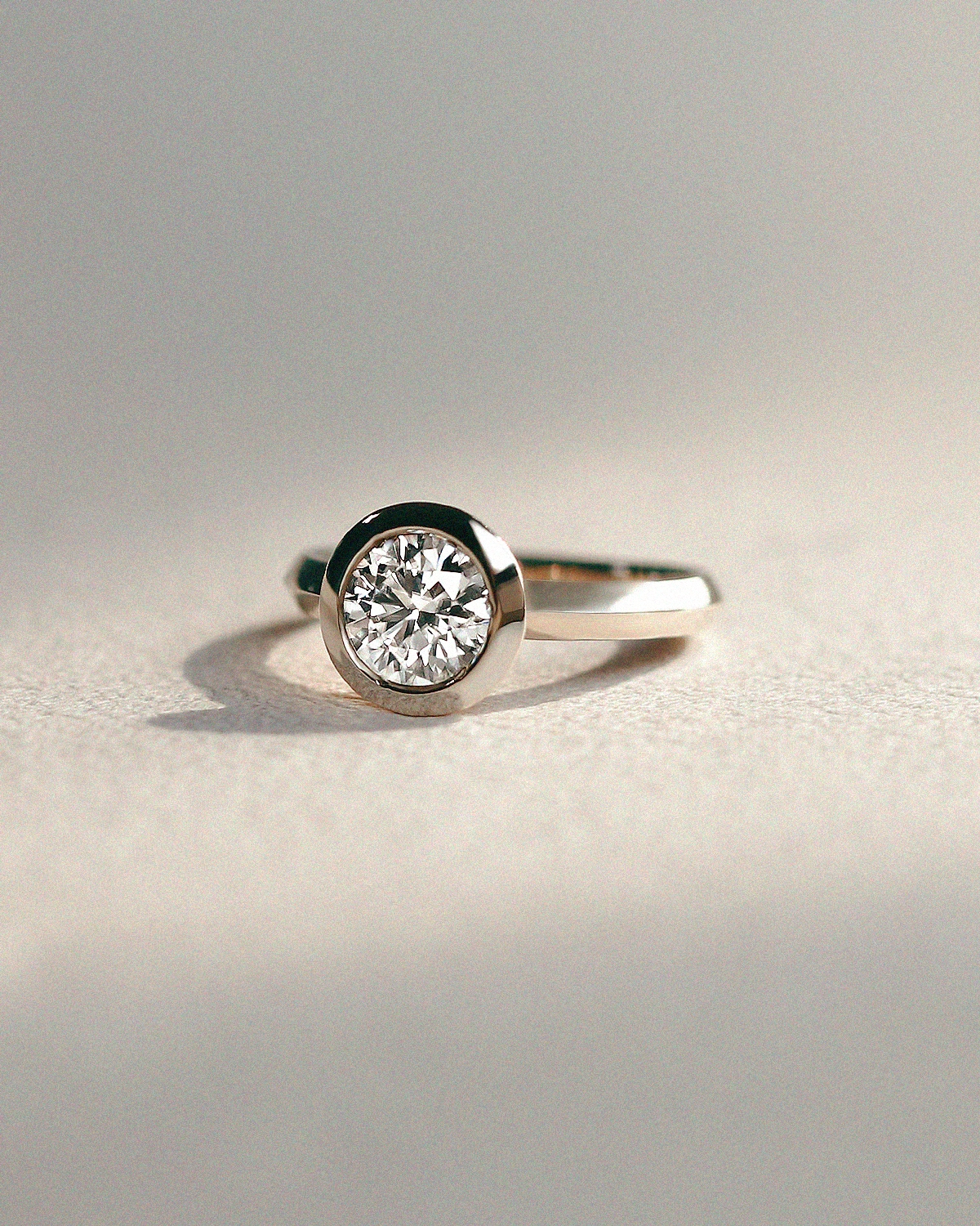 클래식 세팅의 제왕 베젤 세팅을 가치온 만의 스타일로 표현합니다. 스톤을 감싸는 볼륨감 있는 베젤 테두리가 선명함 그 이상의 눈부신 강렬함을 선사합니다. 프롱이 나와있지 않아 편안한 착용감이 돋보이며, 단정하면서도 세련된 분위기를 연출합니다.